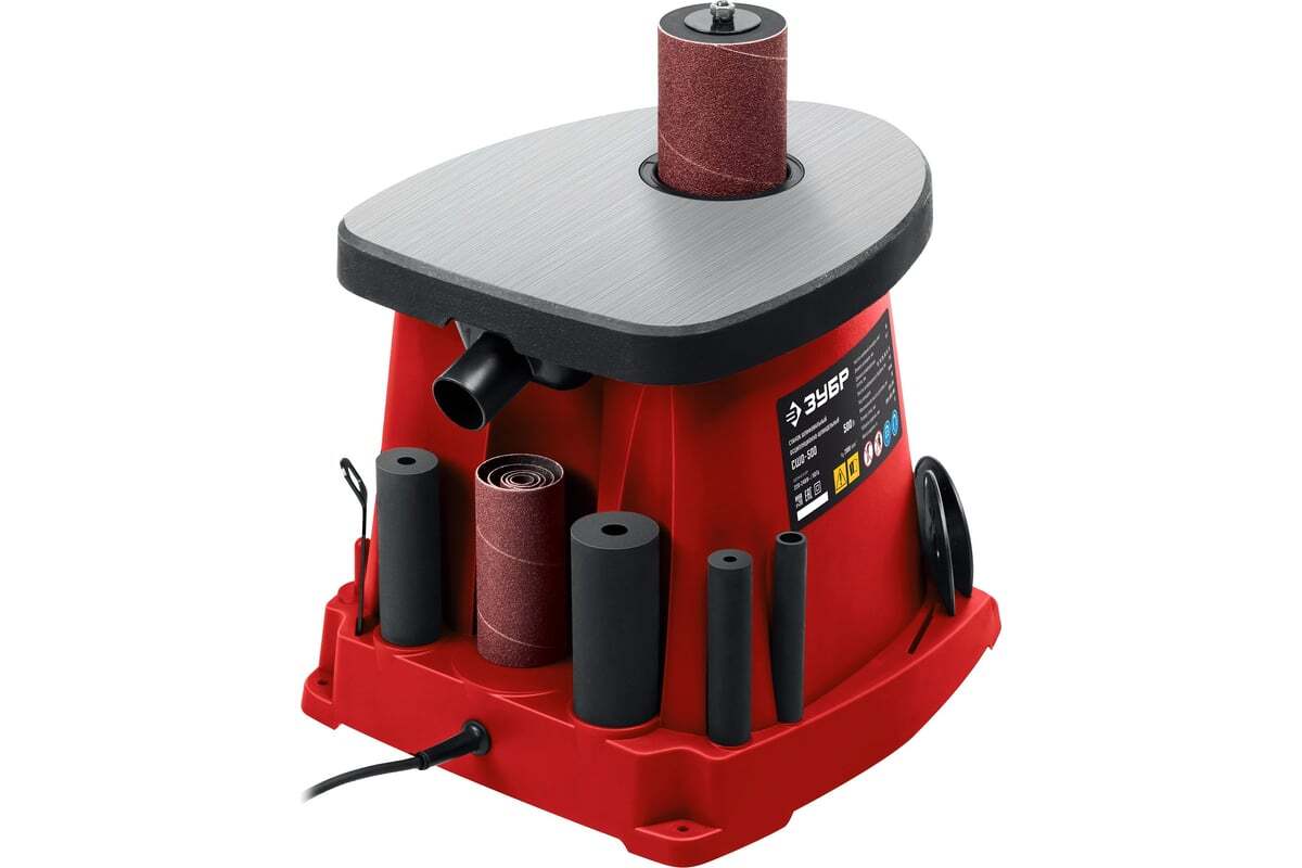 ЗУБР СШО-500 Осциляционно-шпиндельный шлифовальный станок, предназначен для обработки шлифованием криволинейных и прямолинейных поверхностей, кромок и фасок деревянных заготовок путем вращательно-колебательных движений шпинделя. Набор барабанов и абразивных шлифовальных втулок входящих в комплект, позволяет подобрать оптимальную оснастку для обработки. Мощный коллекторный двигатель обеспечивает высокую частоту вращения шпинделя. Станок оптимален для работы с кромками, торцами и краями заготовок с вогнутым профилем. Высокая эффективность при использовании оснастки с такой рабочей поверхностью достигается за счет осцилляции – вертикального перемещения вала. Это увеличивает линейную скорость абразива и предотвращает возникновение продольных царапин из-за дефектов оснастки. Небольшие габариты и вес обеспечивают легкость размещения станка, а также рациональное хранение и транспортировку. В основании станка расположены ложементы для хранения всей оснастки.