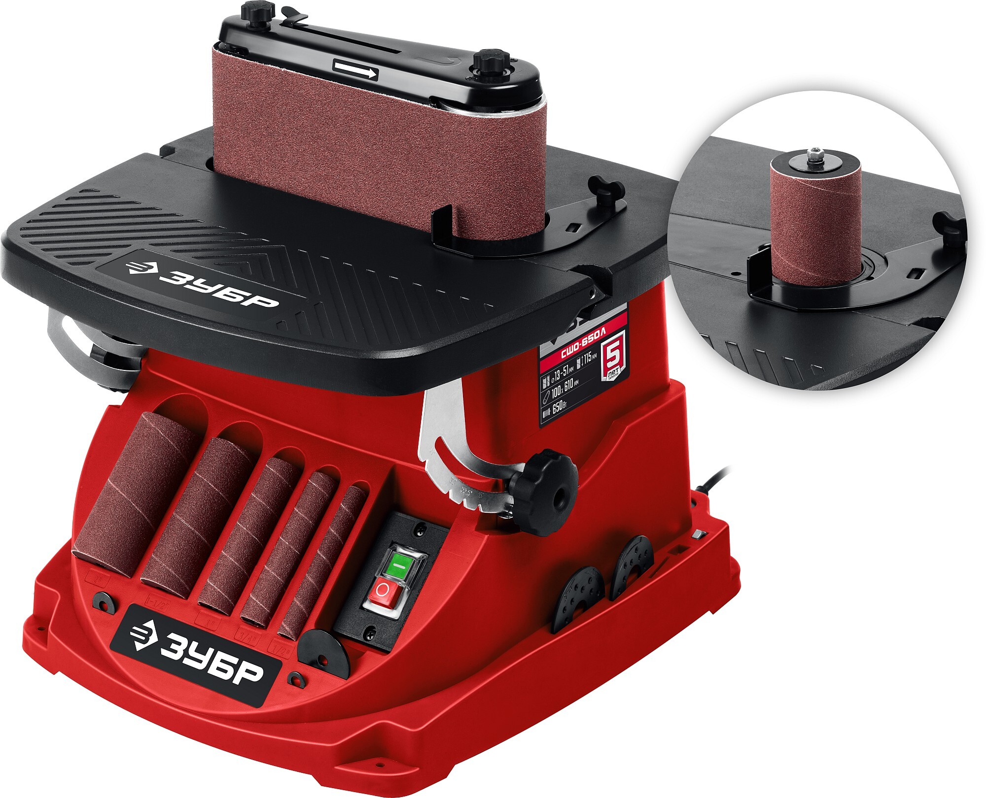 Шлифовальный осцилляционный шпиндельно-ленточный станок ЗУБР СШО-650Л предназначен для окончательной обработки шлифованием криволинейных и прямолинейных поверхностей, кромок и фасок деревянных заготовок путем вращательно-колебательных движений абразивной ленты или втулки. В зависимости от кривизны обрабатываемой поверхности подбирается диаметр абразивной втулки. Высокая эффективность при использовании оснастки с такой рабочей поверхностью достигается за счет осцилляции – вертикального перемещения вала – оно увеличивает линейную скорость абразива и предотвращает возникновение продольных царапин из-за дефектов оснастки. Ленточный узел имеет два обводных ролика разного диаметра, вокруг которых можно работать с вогнутыми поверхностями и прямой участок с металлической подложкой для плоских деталей из дерева. Движение ленты также происходит с осцилляцией, что повышает производительность и качество шлифования. Небольшие габариты и вес обеспечивают легкость размещения станка, а также рациональное хранение и транспортировку. В основании станка расположены ложементы для хранения всей оснастки.