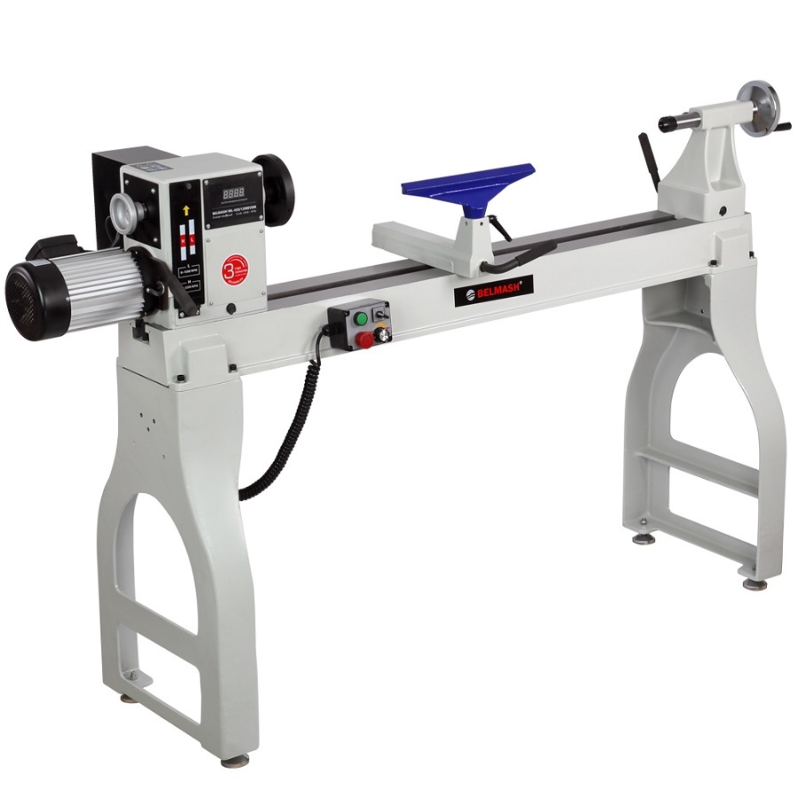 Станок BELMASH WL-450/1200EVSM применяется для обработки древесины c целью придания ей необходимых форм и размеров методом точения. На станке выполняют черновое и чистовое точение цилиндрических, конических, фасонных поверхностей и т. п. Станок имеет мощный асинхронный двигатель – 1500 Вт. Диапазонов скоростей два: низкий - от 0 до 1200 об./мин., и высокий – от 0 до 3200 об./мин. Скорость регулируется плавно с помощью частотного преобразователя. Отличительная особенность – выносной пульт управления с магнитной фиксацией. Станина, подручник и опоры изделия выполнены из высококачественного чугуна. Направляющие шлифуются с высокой точностью для обеспечения плавного хода подручника, передней и задней бабки. В линейке токарных станков данная модель выделяется наибольшим расстоянием между центрами – 1200 мм. Диаметром обработки над станиной тоже не маленький – 460 мм. Станок имеет функцию секторного перемещения.