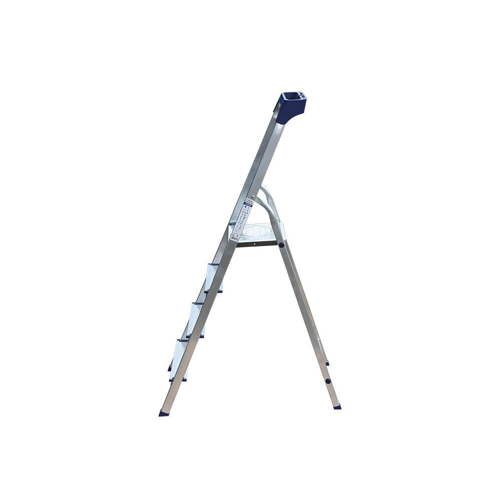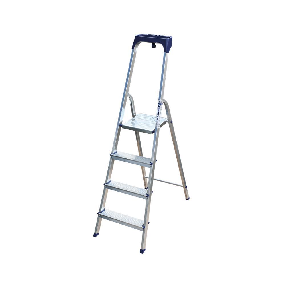Стремянка алюминиевая изготовлена из высокопрочного алюминиевого профиля. Задняя и передняя нога соединены между собой. Рабочая площадка выполнена из оцинкованной стали. Ступени имеют рифленую поверхность. Башмаки изготовлены из высокопрочного пластика. Стремянка в рабочем положении надежно фиксируется рабочей площадкой. Стремянка предназначена для проведения различных видов работ на высоте как в быту, так и на производстве.