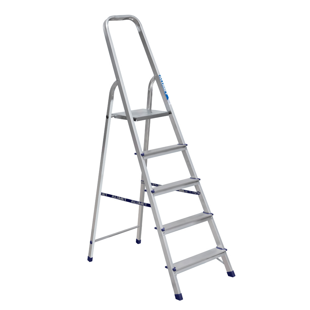 Стремянка Алюмет 5 ступеней алюминиевая матовая выполнена из прочного материала, который позволяет вам без труда переносить ее по строительной площадке. Безопасная, устойчивая и надежная, она станет отличным помощником в вашей работе и хозяйстве. Материал изготовления позволяет говорить о максимальной устойчивости и прочности конструкции. С ней могут работать даже люди тяжелой весовой категории.