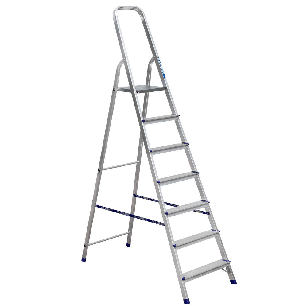 Стремянка Алюмет 7 ступеней двухсторонняя алюминиевая выполнена из прочного материала, который позволяет вам без труда переносить ее по строительной площадке. Безопасная, устойчивая и надежная, она станет отличным помощником в вашей работе и хозяйстве. Материал изготовления позволяет говорить о максимальной устойчивости и прочности конструкции. С ней могут работать даже люди тяжелой весовой категории.