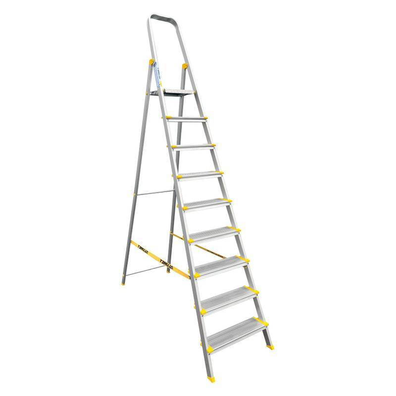 Стремянка алюминиевая Алюмет односекционная 9 ступеней (AS709) профессиональная с анодированным покрытием серии АS предназначена для проведения различных видов работ на не большой высоте, как в быту, так и на производстве. Максимальная рабочая нагрузка - 250кг. Стремянка отличается высокой прочностью, небольшим весом и устойчивостью к воздействию коррозии.
