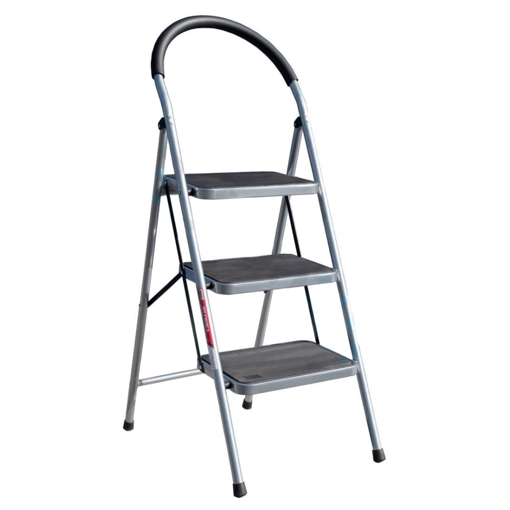Стальная стремянка Алюмет MCH 203 с 3 широкими ступенями предназначена для работы на высоте до 2,47 м. Лестница фиксируется в рабочем положении с помощью платформы. Стальной профиль придает конструкции прочность. Резиновая накладка на дуге предотвращает соскальзывание рук.