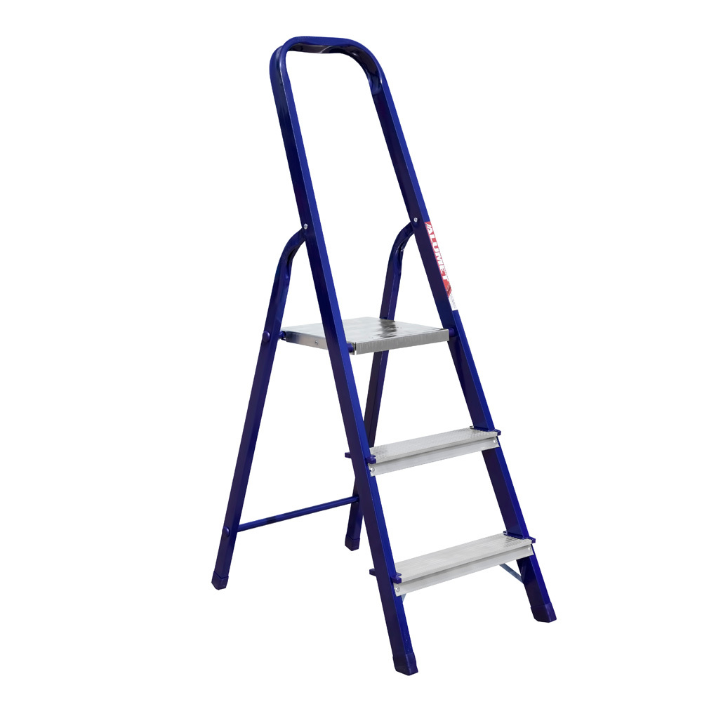 Стремянка Алюмет 3 ступени стальная двухсторонняя алюминиевая выполнена из прочного материала, который позволяет вам без труда переносить ее по строительной площадке. Безопасная, устойчивая и надежная, она станет отличным помощником в вашей работе и хозяйстве. Материал изготовления позволяет говорить о максимальной устйчивости и прочности конструкции. С ней могут работать даже люди тяжелой весовой категории.