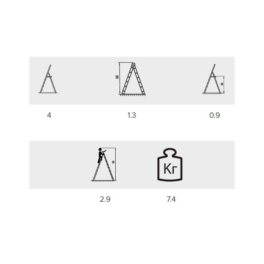 Площадка расположена на высоте 90 см. В сложенном состоянии лестница занимает мало места. Накладки из твердого пластика не царапают основание и не оставляют вмятин в мягких покрытиях. Лестница выдерживает до 150 кг.