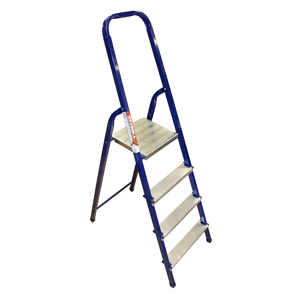 Стальная стремянка Алюмет с 4 ступенями предназначена для работы на высоте до 2,91 м. Толстый стальной профиль обеспечивает устойчивость конструкции. Ступеньки шириной 44 см из рифленого алюминиевого профиля не позволяют ноге соскользнуть.