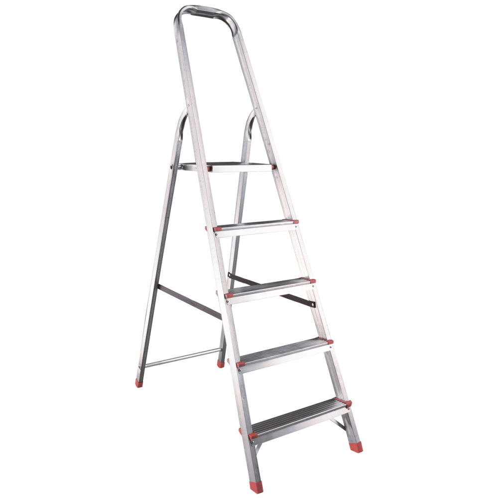 Стальная стремянка Алюмет с 5 ступенями предназначена для работы на высоте до 3,12 м. Стальной профиль с порошковой окраской надежно защищен от коррозии. Ступеньки шириной 46 см из рельефного профиля предотвращают соскальзывание ноги.