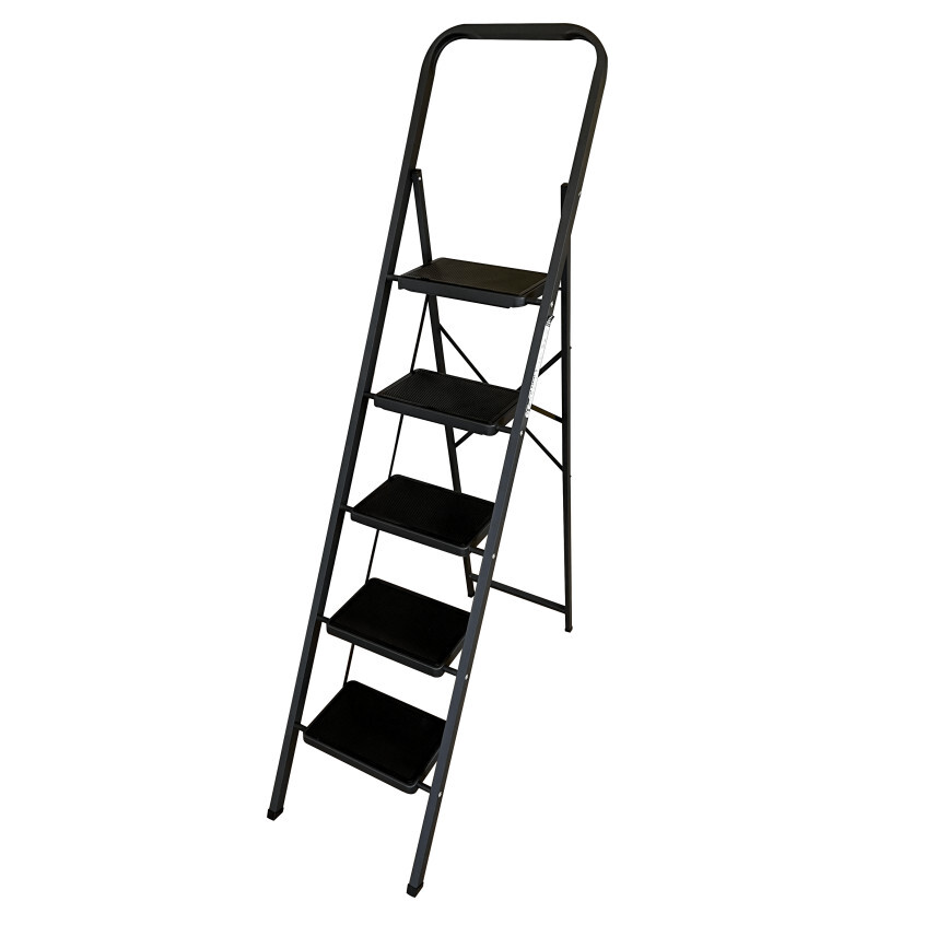 Стремянка стальная Алюмет односекционная 5 ступеней (МК805С) предназначена для проведения различных видов работ на не большой (до 3м) высоте, как в быту, так и на производстве. Стремянка представляет собой свободностоящую переносную лестницу, имеющую сторону подъема (переднюю ногу), опорную сторону (заднюю ногу) и раскладывающуюся для подъема на высоту. Дуга безопасности конструктивно выполнена совместно со стороной подъема. Тетива передней ноги, задняя нога и ступени выполнены из стального профиля, защищенного от коррозии порошковой краской. Задняя и передняя ноги соединены между собой. Ступени имеют рифленую поверхность (стремянки серии МК С – имеют противоскользящие накладки). Башмаки изготовлены из высокопрочного пластика.