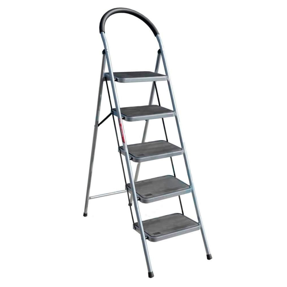 Стальная стремянка Алюмет MCH 205 с 5 широкими ступенями предназначена для работы на высоте до 2,92 м. Лестница фиксируется в рабочем положении с помощью платформы. Опоры из стали придают конструкции прочность. Резиновая накладка на дугу предотвращает соскальзывание рук.