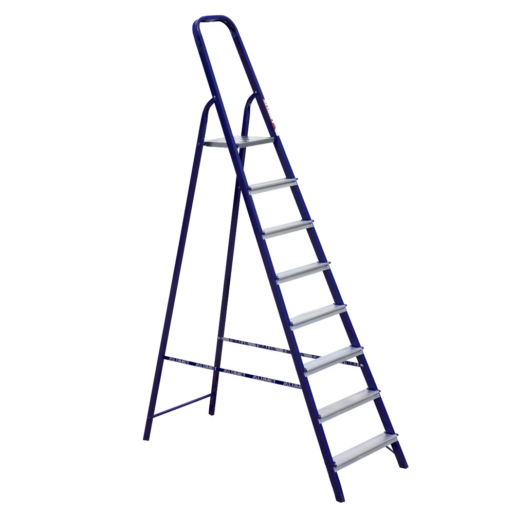 Стремянка Алюмет 8 ступеней стальная двухсторонняя алюминиевая выполнена из прочного материала, который позволяет вам без труда переносить ее по строительной площадке. Безопасная, устойчивая и надежная, она станет отличным помощником в вашей работе и хозяйстве. Материал изготовления позволяет говорить о максимальной устойчивости и прочности конструкции. С ней могут работать даже люди тяжелой весовой категории.