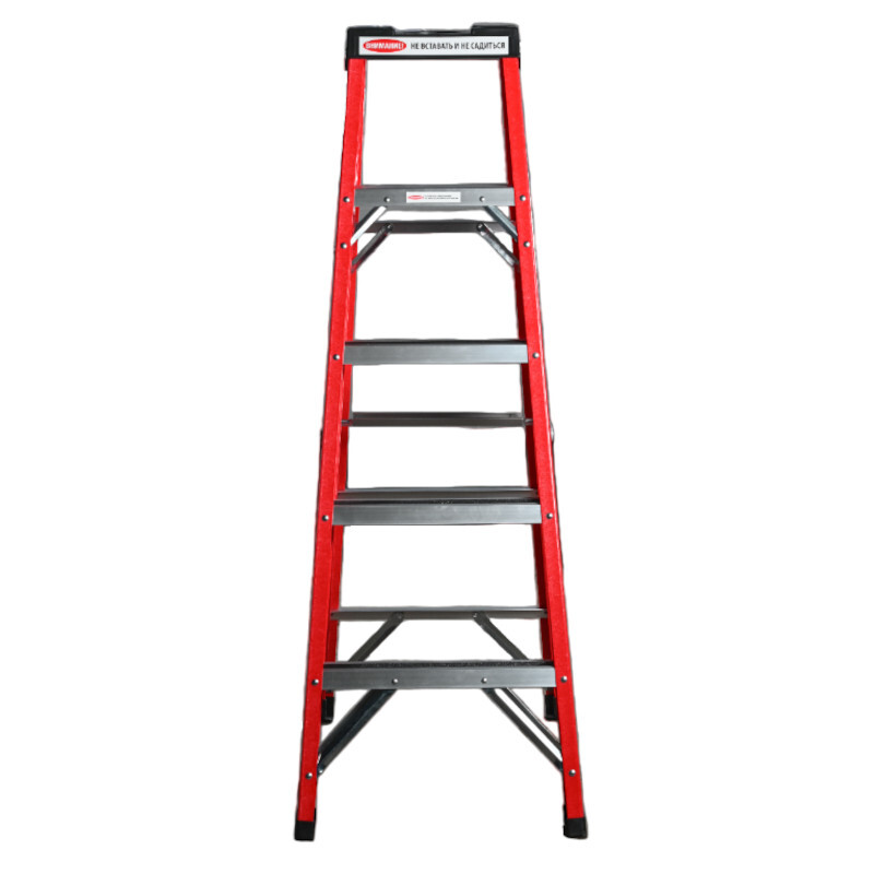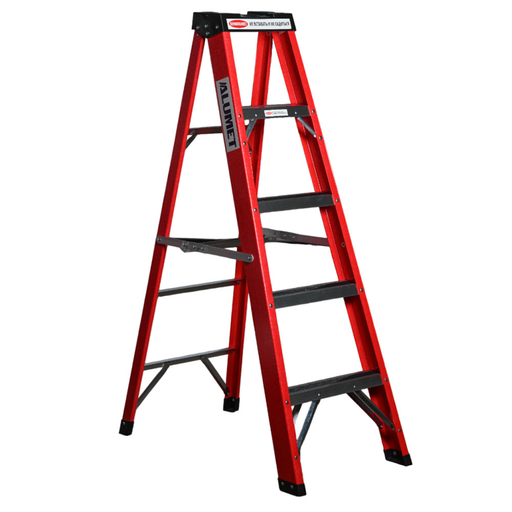 Стремянка стеклопластиковая Алюмет односекционная 4 ступени (SF1004) с органайзером серии SF предназначена для проведения различных видов работ на небольшой высоте. Представляет собой свободностоящую переносную лестницу, имеющую одну сторону подъема и раскладывающуюся для подъема на высоту, с фиксацией двумя страховочными стальными планками. Органайзер имеет эргономичную форму: отверстия под инструменты и лотки для метизов (или мелких деталей). На концах секций установлены противоскользящие заглушки, выполненные из высокопрочного пластика. Тетивы выполнены из П-образного профиля (из стеклопластика), ступени стремянки - из высокопрочного алюминиевого профиля. Ступени имеют противоскользящую рифленую поверхность (по центру проходит наждачная лента). Ширина ступеней 78мм, шаг ступеней – 335мм. Конструкция обеспечивает надежное крепление ступеней к тетивам с помощью заклепок.