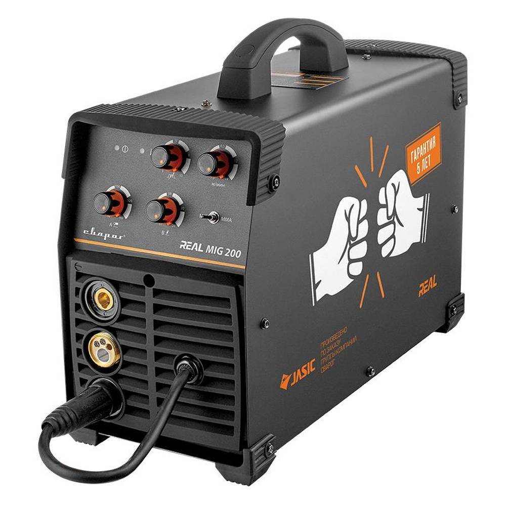 REAL MIG 200 BLACK (N24002N)— инверторный сварочный аппарат для полуавтоматической сварки в среде защитных газов (MIG/MAG), сварки порошковой проволокой (FCAW), а также ручной дуговой сварки покрытым электродом (ММА). Инвертор выпущен в уникальном дизайне и в ограниченном количестве. Отличается от стандартной модели REAL MIG 200 (N24002N) стильным дизайном, расширенной комплектацией.