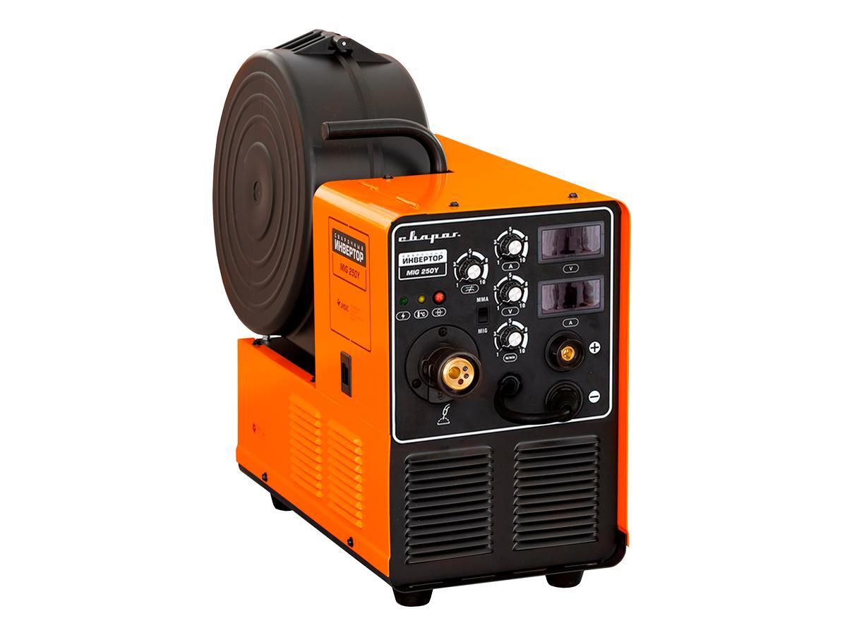 - STANDART MIG 250 Y имеет прочный металлический корпус с удобной ручкой для переноски и катушкой расположенной в защитном кожухе.