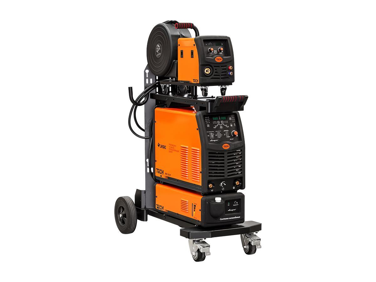 TECH MIG 350 P комплектуется устройством подачи сварочной проволоки и блоком водяного охлаждения