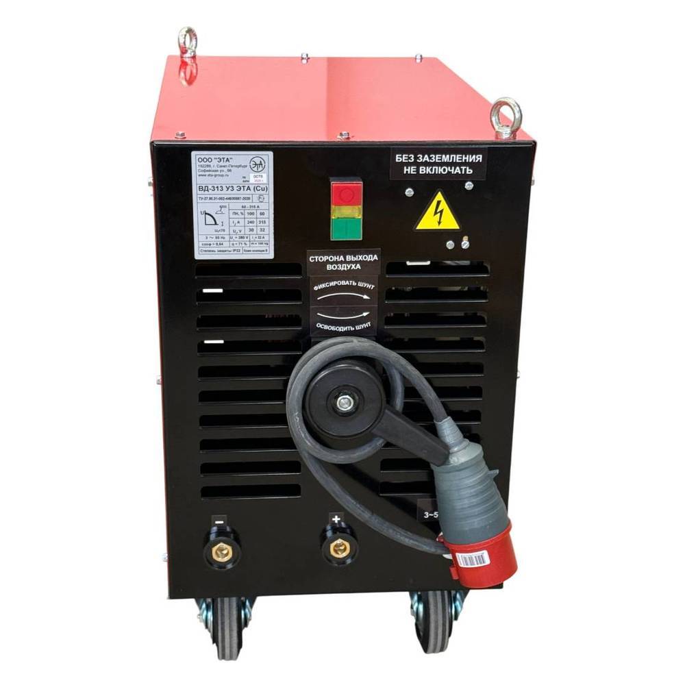 Однопостовый сварочный выпрямитель ВД-313 (Cu) ЭТА - это мощный источник постоянного тока, предназначенный для ручной дуговой сварки, наплавки и резки металла. По сравнению с моделями ВД-309 и ВД-306Б, он обладает повышенной относительной продолжительностью нагрузки, что делает его оптимальным решением для интенсивной эксплуатации в производственных и бытовых условиях.