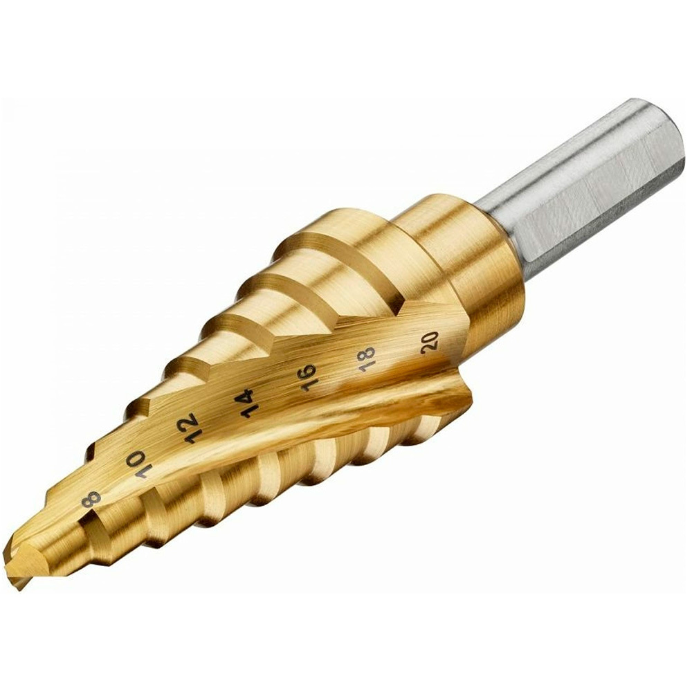 Сверло по металлу DeWalt DT90248 6-20мм ступенчатое с титановым покрытием для снижения нагрева при сверлении и дополнительной защиты от коррозии. Применяется для сверления листовой нержавеющей стали толщиной до 5мм, металла, древесины и пластика.