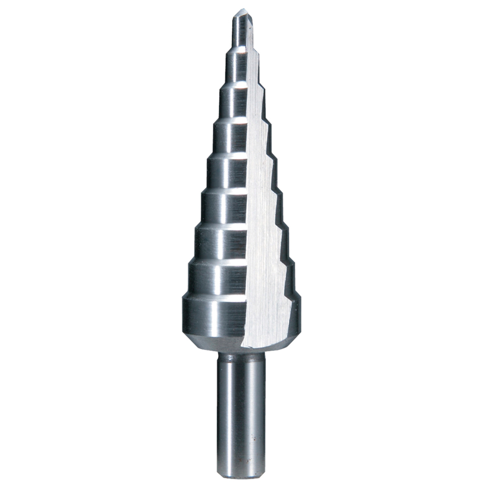 Сверло по металлу Makita HSS-TiN 4-32мм ступенчатое (D-40107) с прямым желобком и титановым покрытием предназначено для сверления отверстий различного диаметра в нелегированной стали, нержавеющей стали, алюминии, чугуне, стали с пределом прочности до 800 Н/мм².
