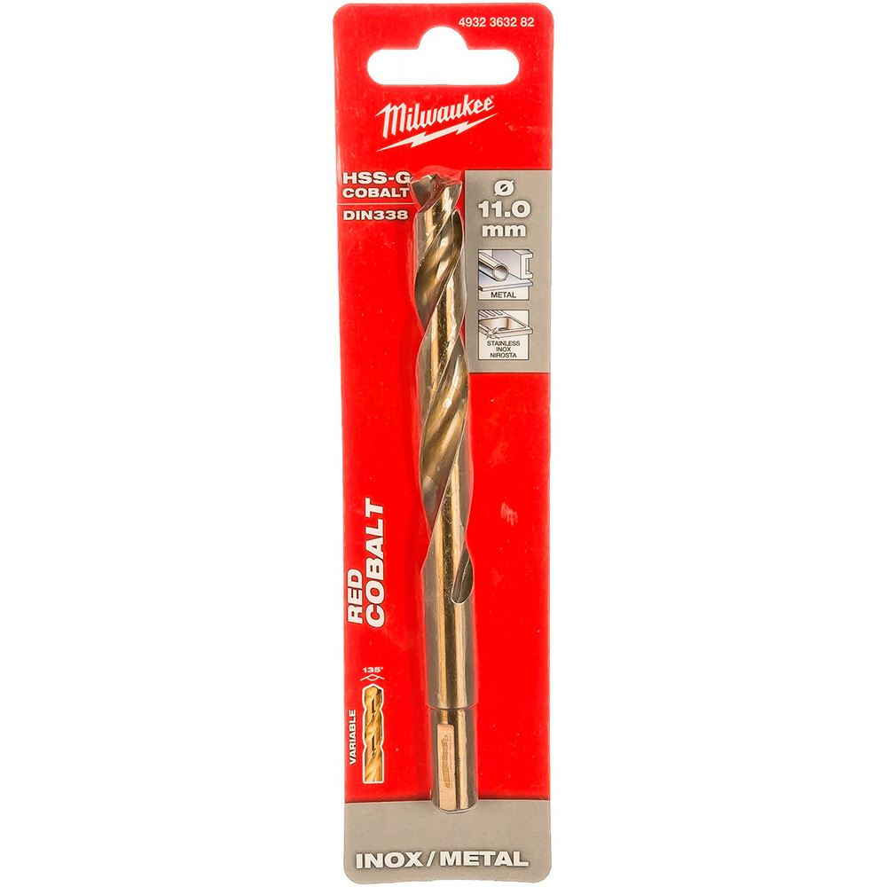 Сверло по металлу Milwaukee HSS-CO 11x142мм (4932363282) из твердого метала с теплостойкой кобальтовой-легированной быстрорежущей стали. Угол режущей кромки 135° для улучшенного центрирования - кернения не требуется. Для сверления высоколегированных сталей и металлов с пределом прочности на разрыв свыше 1000 Н/мм², например, тепло- и кислотоупорные стали и нержавеющая сталь.