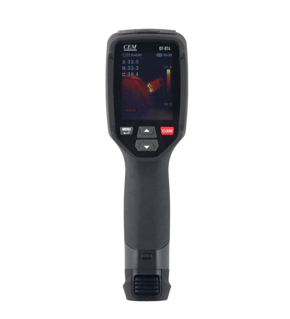 Тепловизор CEM DT-874 — высокотехнологичное устройство, обладающее высоким разрешением матрицы и широким разбегом измеряемых температур от -20 до +400°С. Он оснащён функцией автоопределения горячих и холодных мест, а также удобным USB Type-C разъёмом для зарядки.