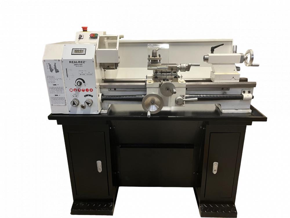 Токарно-винторезный станок REALREZ 280x700 — это незаменимый и надежный станок для небольших металлообрабатывающих предприятий. Станок поставляется в комплекте со столом, ножки которого выполнены в виде тумб, для удобного расположения инструмента. На станке можно нарезать как метрическую, так и дюймовую резьбу благодаря шпинделям с прочными металлокерамическими подшипниками.
