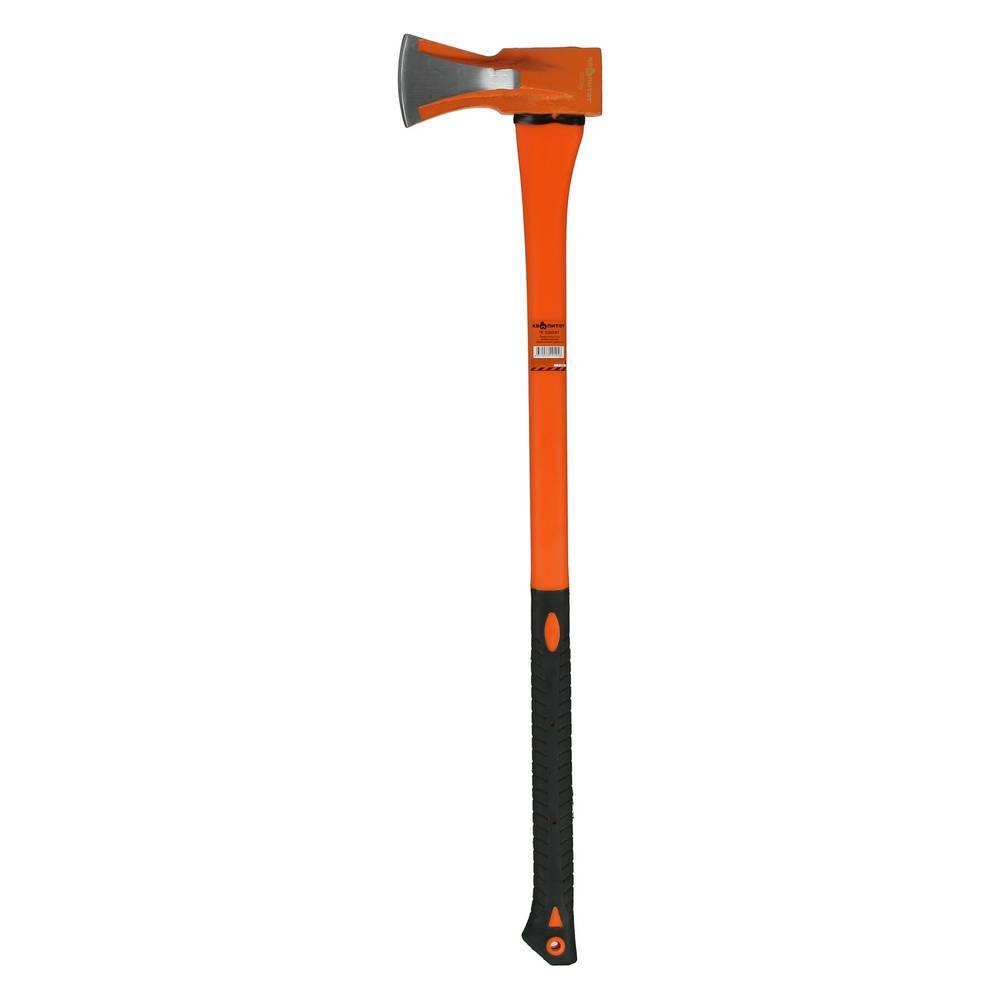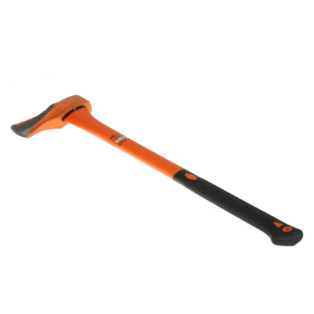Топор-колун оснащен удобной длинной рукояткой, которая имеет резиновые накладки, для снижения вибраций и колебаний во время рабочего процесса. Полотно обладает утолщениями с обеих сторон, что значительно облегчает процесс раскалывания древесины.
