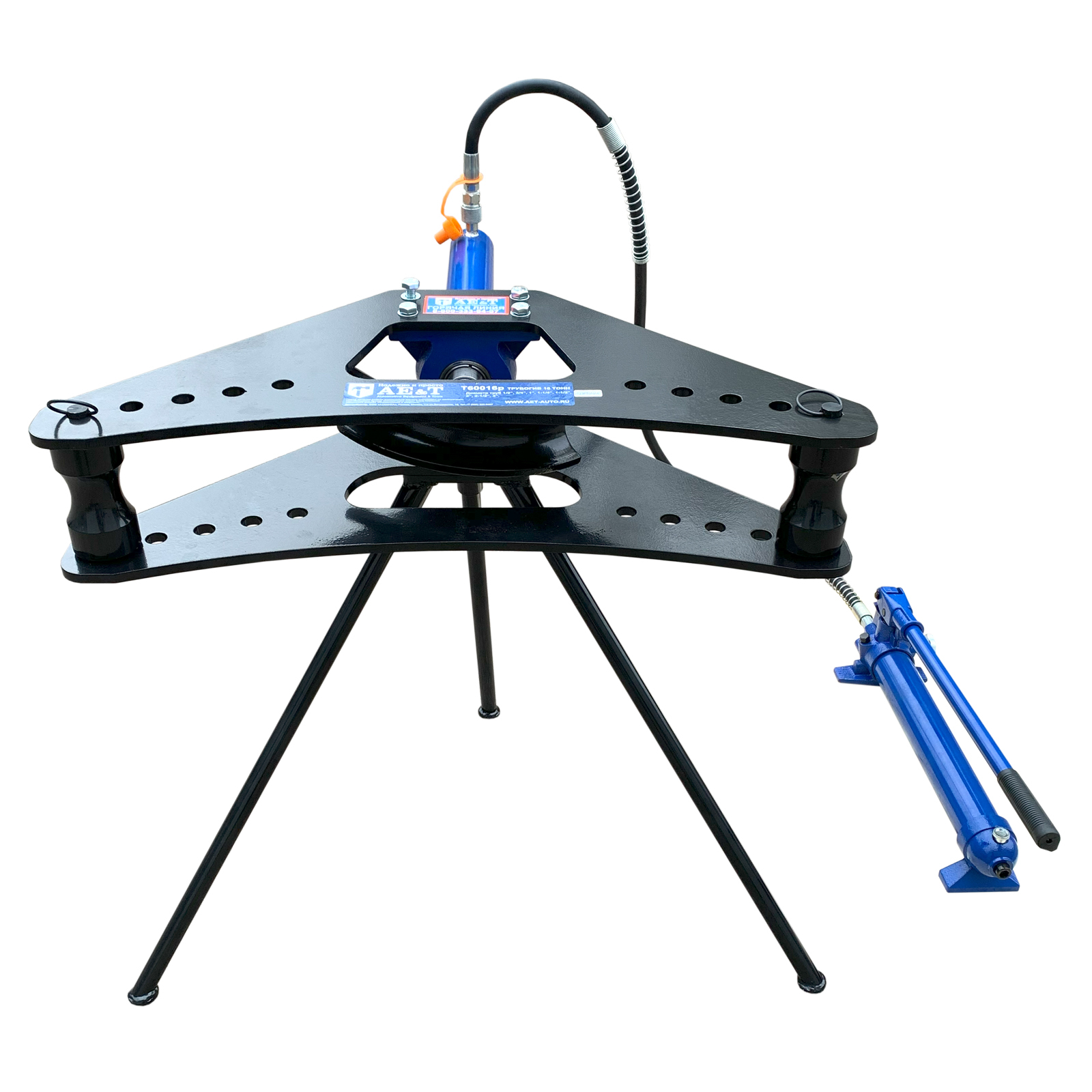Данную модель мы рекомендуем тем предприятиям, которые занимаются гибкой труб и в своих помещениях, таких как цеха и мастерские, так и на выездных ремонтных работах: на водопроводе, при прокладке кабелей и т. д. Изделие превосходно справляется с трубами диаметром до восьмидесяти восьми миллиметров и толщиной до 4,75 см. Гибка происходит быстро: после установки упоров и изгиба подходящего размера (идут в комплекте) можно начинать процесс. Для эксплуатации в неподготовленных пространствах изделие поставляется со стальной треногой повышенной устойчивости.