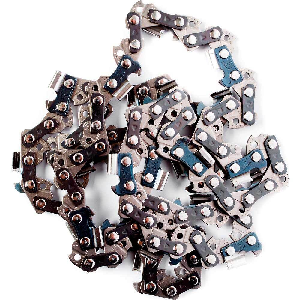 Подходит для любителей и случайных пользователей. Данная низкопрофильная цепь оснащена зубьями с пониженной отдачей, которые имеют полудолотообразную форму. Приподнятая задняя часть режущего зуба позволяет снизить вибрацию во время пиления. Она отличается высокой производительностью. На зубьях цепи расположена маркировка, которая показывает степень износа и позволяет правильно соблюдать угол при заточке цепи. На ведущих звеньях расположены смазочные каналы, по которым масло поступает на шарниры, равномерно смазывая цепь, что продлевает срок ее службы.