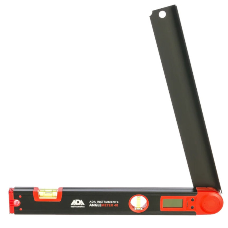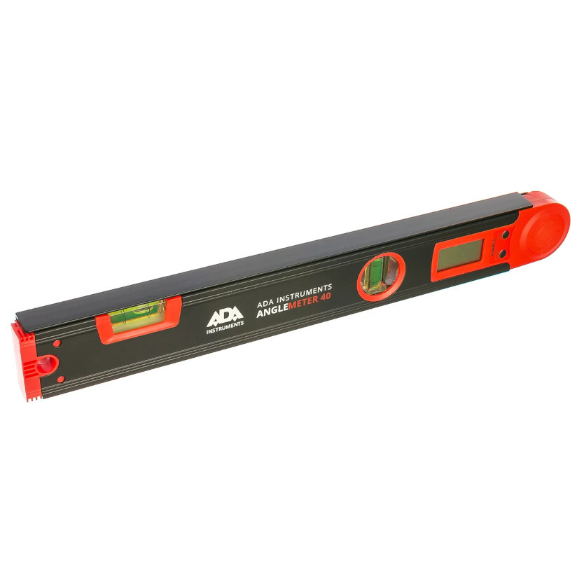 Угломер электронный ADA AngleMeter 40 - точный, легкий, прочный инструмент с набором функций для быстрых расчетов. Предназначен для измерения углов при плотницких и столярных работах. Корпус прибора выполнен из анодированного алюминия. Длина угломера - 40 см. Массивный профиль - не боится ударов и падений. Измеренные значения и режимы вычислений отображаются на ЖК дисплей. Контролировать начальное положение угломера (горизонт или вертикаль) можно с помощью пузырьковых уровней. Для точных измерений - угломер можно быстро откалибровать нажатием всего одной клавиши. Начало отсчета можно задать при любом положении откидного плеча угломера нажатием кнопки ZERO.