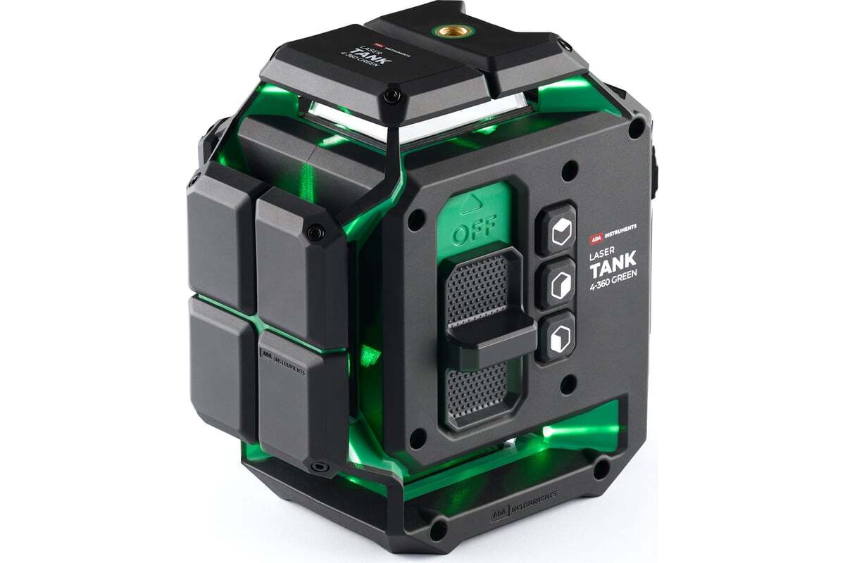 Модель lasertank 4-360 green ultimate edition – первый профессиональный лазерный уровень ADA, который способен проецировать четыре линии 360°. Взаимно перпендикулярные линии (две горизонтальные и две вертикальные) предоставляют возможность выполнять абсолютно любую разметку, что делает этот инструмент незаменимым для профессионалов.