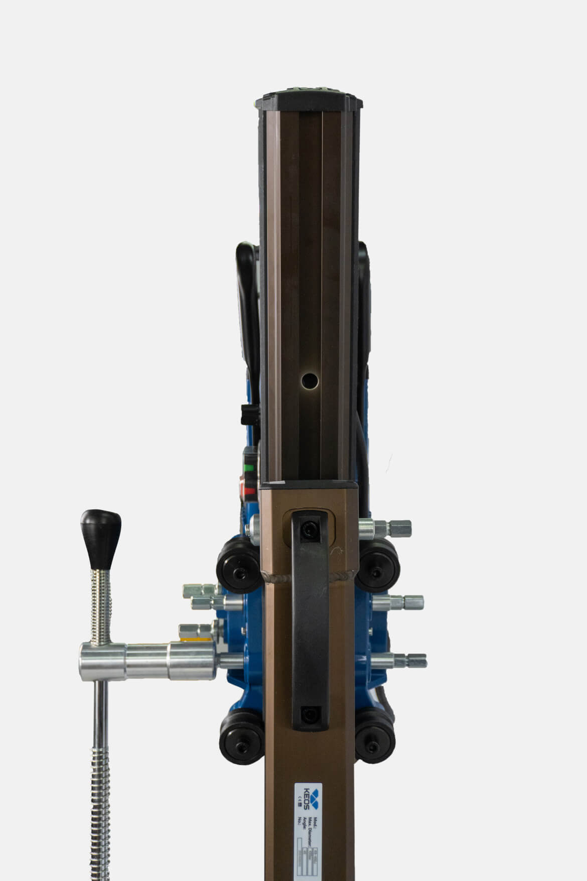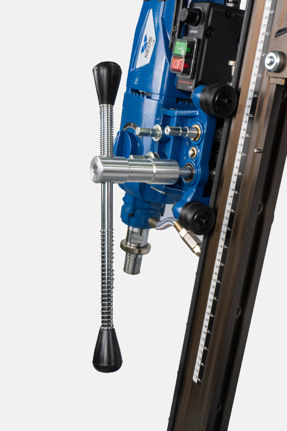 Штатив обладает быстрой и лёгкой сменой угла наклона от 25° до 90°, что обеспечивает исключительную гибкость для бурения под различными углами. Две скорости редуктора каретки позволяют выбрать оптимальную скорость подачи мотора, адаптируясь под конкретные условия.