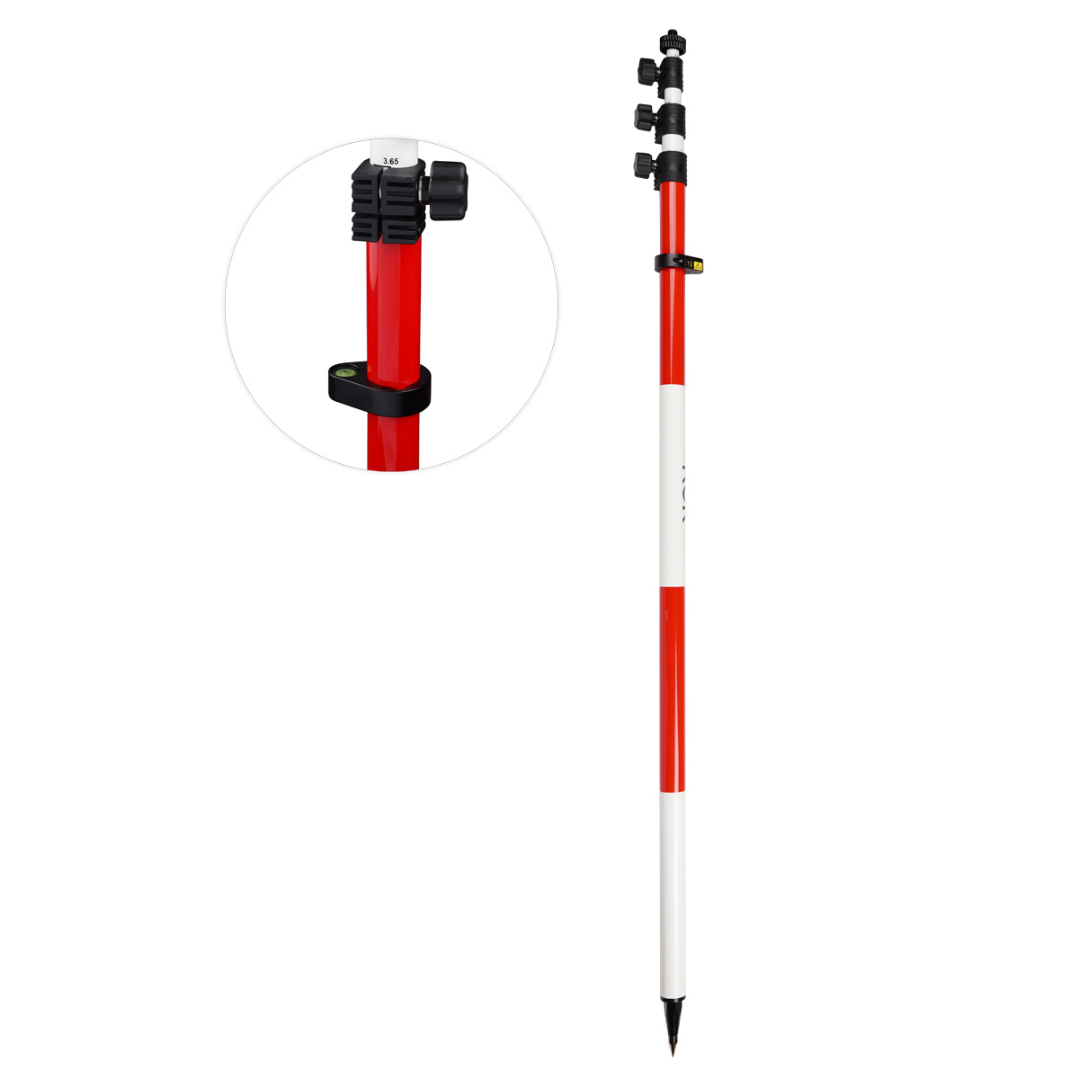 Практичная облегченная телескопическая веха RGK CLS46-FG, весом 2 кг, изготовленная из лёгкого токонепроводящего стекловолокна с регулируемым пузырьковым уровнем, предназначена для установки отражательных систем или ГНСС приемников на высоте до 4,6 м.