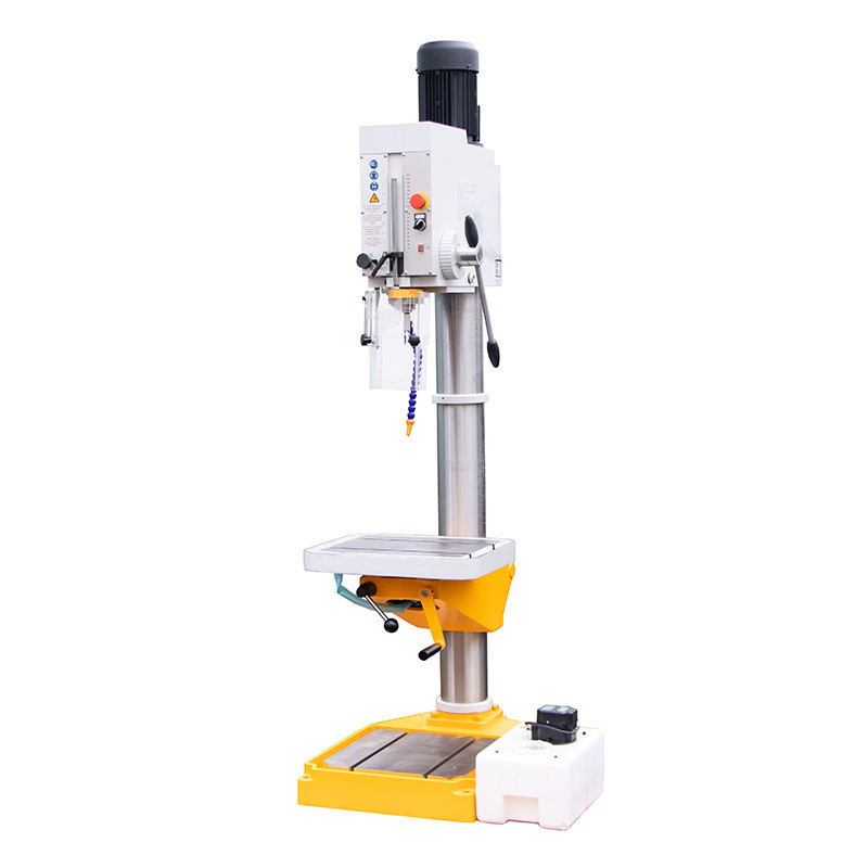 Станок обладает рядом особенностей. Данная модель произведена в напольном исполнении и требует надёжной установки на анкерные болты. Отдельно стоить отметить регулируемую автоматическую вертикальную подачу пиноли при сверлении с автоматическим отключением на заданную глубину. 8 скоростной редукторный привод с удобным переключением оборотов. Мощный асинхронный двигатель выдерживающий высокие нагрузки.