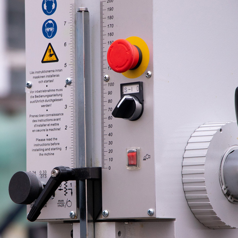 Для дополнительной защиты оператора станок оборудован защитным экраном с концевиком, который не закрывает обзор, но обеспечивает безопасность во время работы. Конструкцией предусмотрена система охлаждения продлевающая срок службы режущего инструмента.