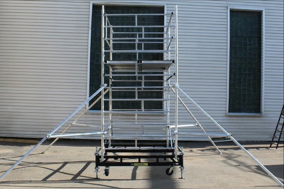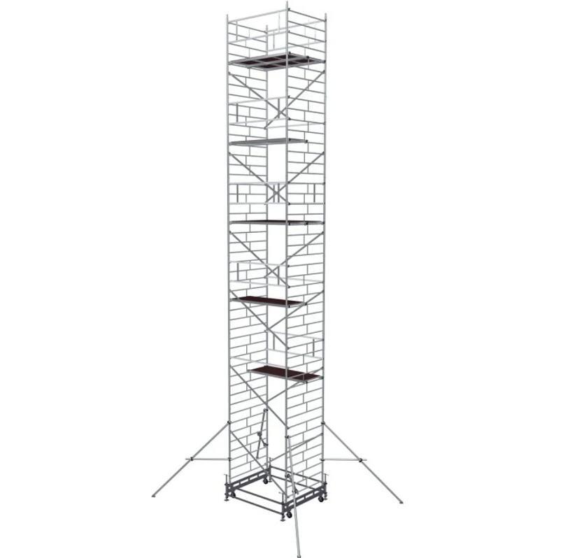 Вышка модульная алюминиевая MEGAL ВМА 1400/13 предназначена для организации рабочего места на высоте с использованием лестничных маршей в строительно-монтажных, ремонтных и прочих работах. Вышка собирается из двухметровых и метровых вертикальных рам. Рамы стыкуются между собой и фиксируются крепежными скобами. Все ступени рам выполнены из рифленого профиля, что обеспечивает безопасный подъем. Используются диагональные и горизонтальные связи (стяжки). Рабочий настил размером 2,0 х 1,4 м с люком. Вышка монтируется на усиленном широком основании. Мобильность вышки достигается за счет поворотных колес со стопорами. Опорная поверхность на домкратах, исключая колеса.