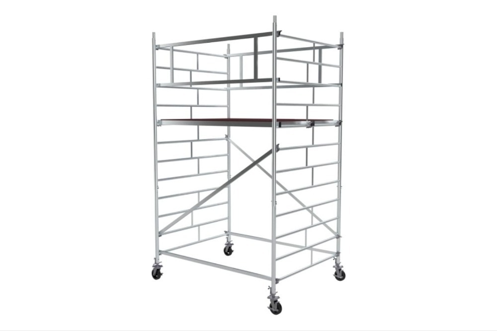 Вышка модульная алюминиевая MEGAL ВМА 1400/4 предназначена для организации рабочего места на высоте с использованием лестничных маршей в строительно-монтажных, ремонтных и прочих работах. Вышка собирается из двухметровых и метровых вертикальных рам. Рамы стыкуются между собой и фиксируются крепежными скобами. Все ступени рам выполнены из рифленого профиля, что обеспечивает безопасный подъем. Используются диагональные и горизонтальные связи (стяжки). Рабочий настил размером 2,0 х 1,4 м с люком. Вышка монтируется на компактном основании из стальных стяжек. Мобильность вышки достигается за счет поворотных колес со стопорами. Колеса регулируются по высоте в рамках длины винтовой опоры.