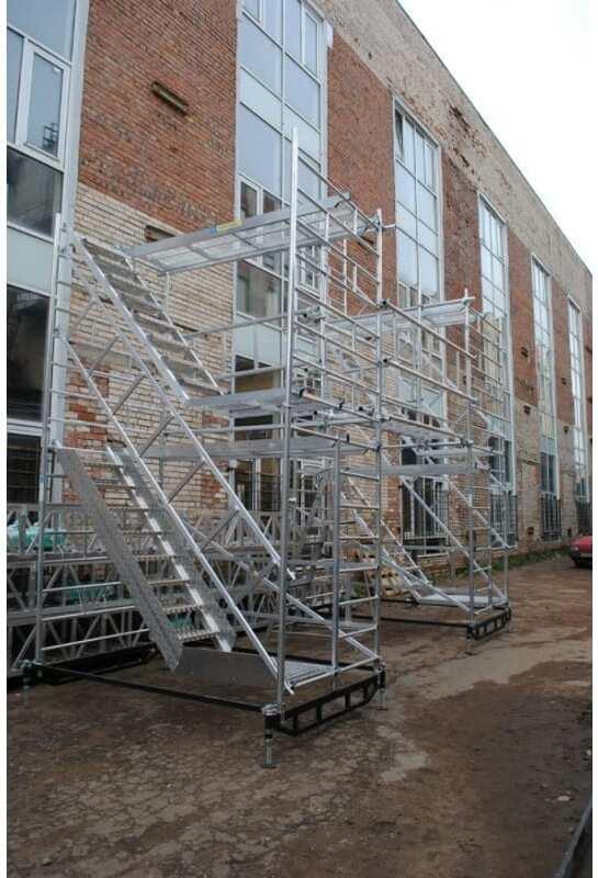 Комфортный подъем по наклонным лестничным маршам с широкими рифлеными ступенями