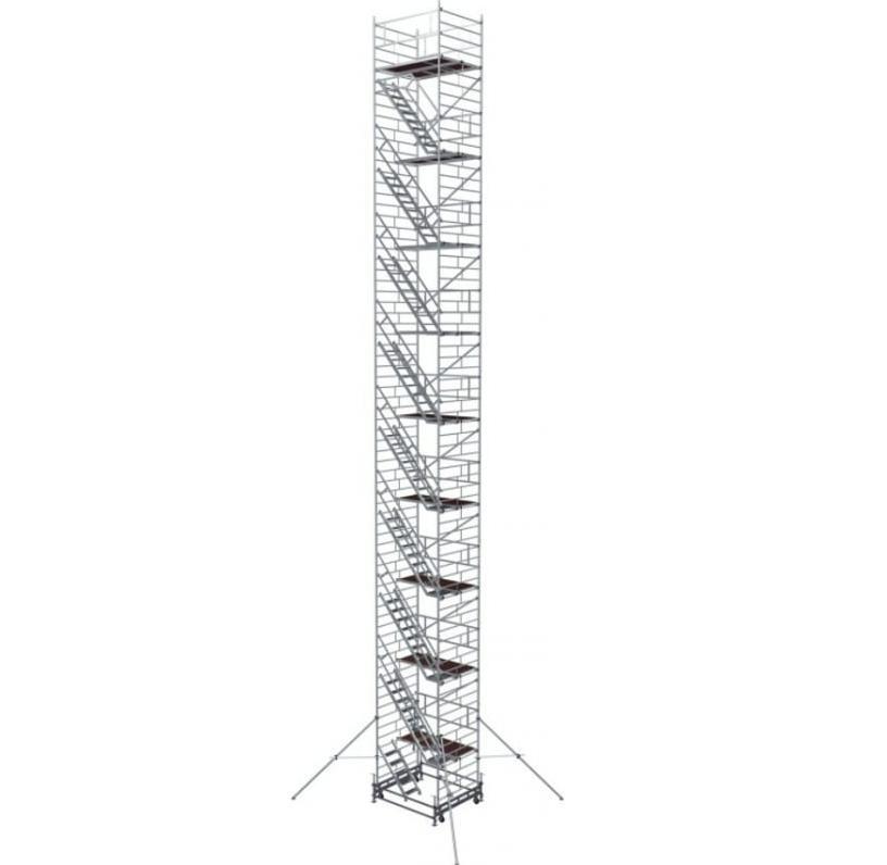 Вышка модульная алюминиевая MEGAL ВМА 1400Л/19 предназначена для организации рабочего места на высоте в строительно-монтажных, ремонтных и прочих работах. Сборка вышки производится без использования инструментов за счет наличия замкового крепления элементов. Вышка собирается из двухметровых и метровых вертикальных рам. Рамы стыкуются между собой и фиксируются крепежными скобами. Площадки соединяются наклонными лестничными маршами с рифлеными широкими ступенями, что обеспечивает комфортный подъем. Каждый марш оснащен перилами-ограждениями для безопасности. Монтируется на усиленном основании из двойной траверсы. Рабочая площадка размером 2,0 х 1,4 м позволяет с удобством расположиться четырем рабочим с инструментом. Высокая грузоподъемность обеспечивается за счет использования труб и профилей со стенкой не менее 2,5мм. Вышка имеет легкий вес за счет использования алюминиевых сплавов. Компенсация неровной поверхности возможна за счет регулирования вышки по высоте с помощью винтовых опор. Наличие поворотных колес со стопорами обеспечивает мобильность вышки.