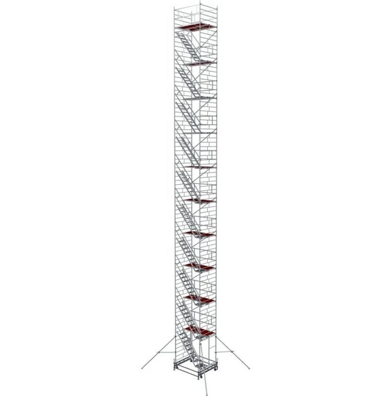 Вышка модульная алюминиевая MEGAL ВМА 1400Л/22 предназначена для организации рабочего места на высоте в строительно-монтажных, ремонтных и прочих работах. Сборка вышки производится без использования инструментов за счет наличия замкового крепления элементов. Вышка собирается из двухметровых и метровых вертикальных рам. Рамы стыкуются между собой и фиксируются крепежными скобами. Площадки соединяются наклонными лестничными маршами с рифлеными широкими ступенями, что обеспечивает комфортный подъем. Каждый марш оснащен перилами-ограждениями для безопасности. Монтируется на усиленном основании из двойной траверсы. Рабочая площадка размером 2,0 х 1,4 м позволяет с удобством расположиться четырем рабочим с инструментом. Высокая грузоподъемность обеспечивается за счет использования труб и профилей со стенкой не менее 2,5мм. Вышка имеет легкий вес за счет использования алюминиевых сплавов. Компенсация неровной поверхности возможна за счет регулирования вышки по высоте с помощью винтовых опор. Наличие поворотных колес со стопорами обеспечивает мобильность вышки.