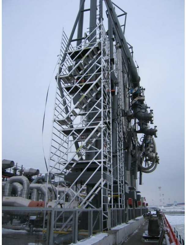 Комфортный подъем по наклонным лестничным маршам с широкими рифлеными ступенями