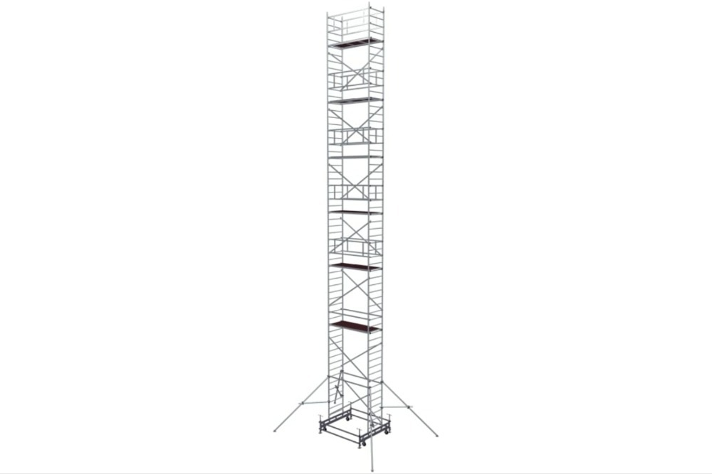 Вышка модульная алюминиевая MEGAL ВМА 700/16 предназначена для организации рабочего места на высоте с использованием лестничных маршей в строительно-монтажных, ремонтных и прочих работах. Вышка собирается из двухметровых и метровых вертикальных рам. Рамы стыкуются между собой и фиксируются крепежными скобами. Все ступени рам выполнены из рифленого профиля, что обеспечивает безопасный подъем. Используются диагональные и горизонтальные связи (стяжки). Рабочая площадка размером 2,0 х 0,7м с люком. Монтируется на усиленном основании из двойной траверсы с колесами. Мобильность вышки достигается за счет поворотных колес со стопорами. Компенсация неровной поверхности возможна за счет наличия винтовых опор, регулируемых высоте.