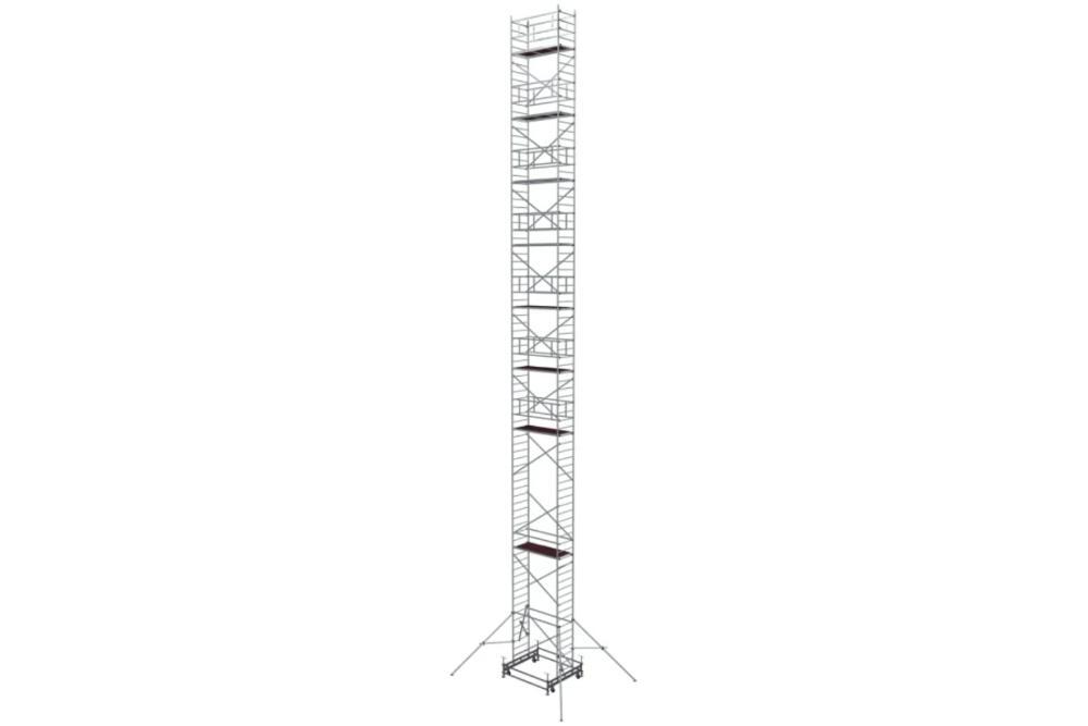 Вышка модульная алюминиевая MEGAL ВМА 700/22 предназначена для организации рабочего места на высоте с использованием лестничных маршей в строительно-монтажных, ремонтных и прочих работах. Вышка собирается из двухметровых и метровых вертикальных рам. Рамы стыкуются между собой и фиксируются крепежными скобами. Все ступени рам выполнены из рифленого профиля, что обеспечивает безопасный подъем. Используются диагональные и горизонтальные связи (стяжки). Рабочая площадка размером 2,0 х 0,7м с люком. Монтируется на усиленном основании из двойной траверсы с колесами. Мобильность вышки достигается за счет поворотных колес со стопорами. Компенсация неровной поверхности возможна за счет наличия винтовых опор, регулируемых высоте.