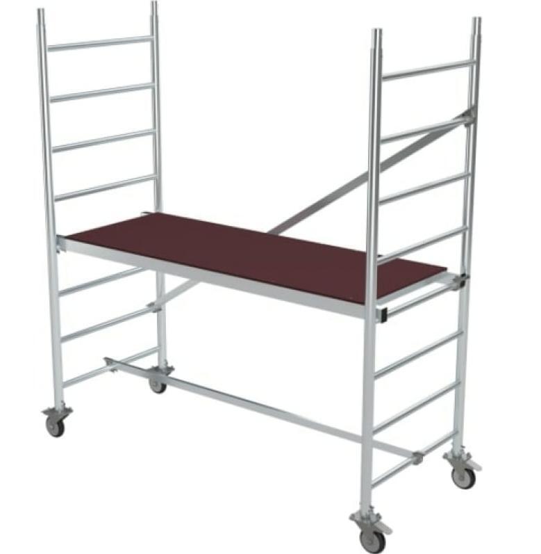 Вышка модульная алюминиевая MEGAL ВМА 700/3 используется для организации рабочего места на высоте в строительно-монтажных, ремонтных и прочих работах. Вышка собирается из двухметровых и метровых вертикальных рам. Рамы стыкуются между собой и фиксируются крепежными скобами. Все ступени рам выполнены из рифленого профиля. Для придания жесткости конструкции используются диагональные и горизонтальные связи (стяжки). Рабочая площадка размером 2,0 х 0,7м с люком. Вышка оснащена поворотными колесами со стопорами. Колеса регулируются по высоте в рамках длины винтовой опоры. Высокая грузоподъемность обеспечивается за счет использования труб и профилей со стенкой не менее 2,5мм.