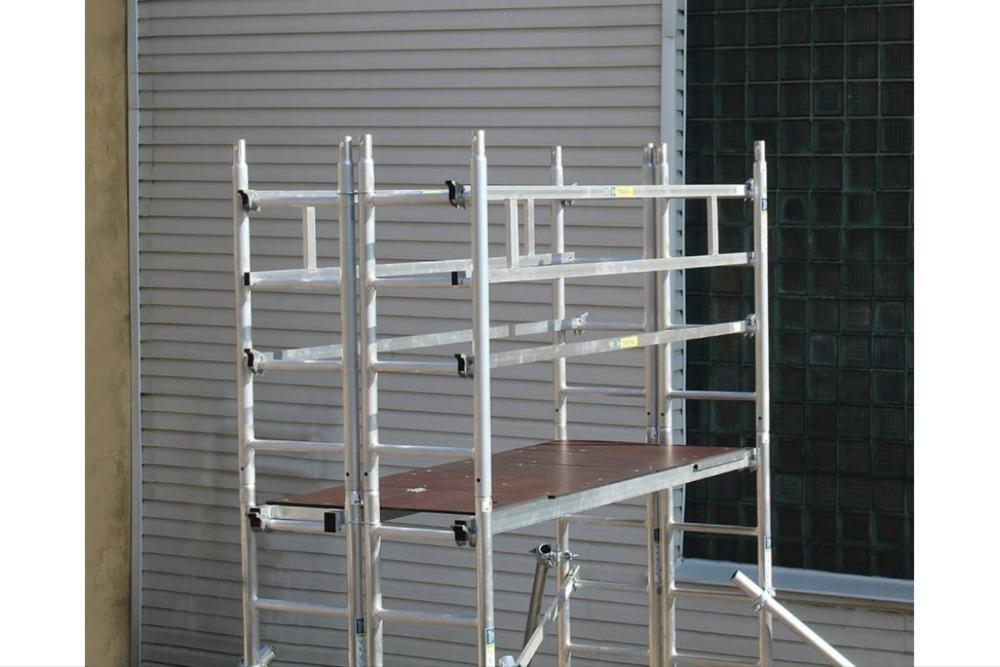 Вышка модульная алюминиевая MEGAL ВМА 900/12 используется при выполнении работ внутри резервуаров и емкостей. Габариты всех деталей не превышают 450мм, что позволяет пропустить их через технический лаз и провести сборку внутри резервуара. Вышка собирается из узких двухметровых и метровых вертикальных рам. Рамы фиксируются крепежными скобами и крепежом для стыкования рам. Безопасный подъем обеспечивается за счет использования нескользящих рифленых перекладин в рамах. Используются диагональные и горизонтальные связи (стяжки). Сборка производится без инструментов за счет наличия замкового крепления элементов. Верхний рабочий настил размером 2,0 х 0,9м с люком (составной). Промежуточные настилы размером 2,0 х 0,45м. Монтируется на усиленном основании из двойной траверсы с поворотными колесами, со стопорами. Используется надежная фиксация к стенкам резервуара за счет магнитных крепежей, которые не портят поверхность. Вышка имеет легкий вес за счет использования алюминиевых сплавов. Высокая грузоподъемность обеспечивается за счет использования труб и профилей со стенкой не менее 2,5мм. Компенсация неровной поверхности возможна за счет регулирования вышки по высоте с помощью винтовых домкратов.