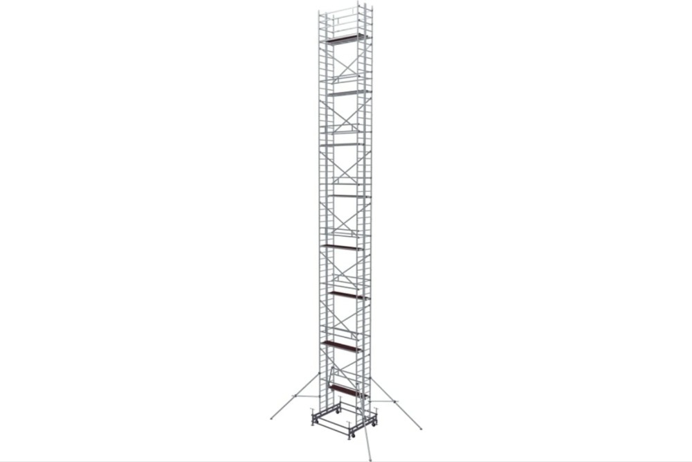 Вышка модульная алюминиевая MEGAL ВМА 900/17 используется при выполнении работ внутри резервуаров и емкостей. Габариты всех деталей не превышают 450мм, что позволяет пропустить их через технический лаз и провести сборку внутри резервуара. Вышка собирается из узких двухметровых и метровых вертикальных рам. Рамы фиксируются крепежными скобами и крепежом для стыкования рам. Безопасный подъем обеспечивается за счет использования нескользящих рифленых перекладин в рамах. Используются диагональные и горизонтальные связи (стяжки). Сборка производится без инструментов за счет наличия замкового крепления элементов. Верхний рабочий настил размером 2,0 х 0,9м с люком (составной). Промежуточные настилы размером 2,0 х 0,45м. Монтируется на усиленном основании из двойной траверсы с поворотными колесами, со стопорами. Используется надежная фиксация к стенкам резервуара за счет магнитных крепежей, которые не портят поверхность. Вышка имеет легкий вес за счет использования алюминиевых сплавов. Высокая грузоподъемность обеспечивается за счет использования труб и профилей со стенкой не менее 2,5мм. Компенсация неровной поверхности возможна за счет регулирования вышки по высоте с помощью винтовых домкратов.
