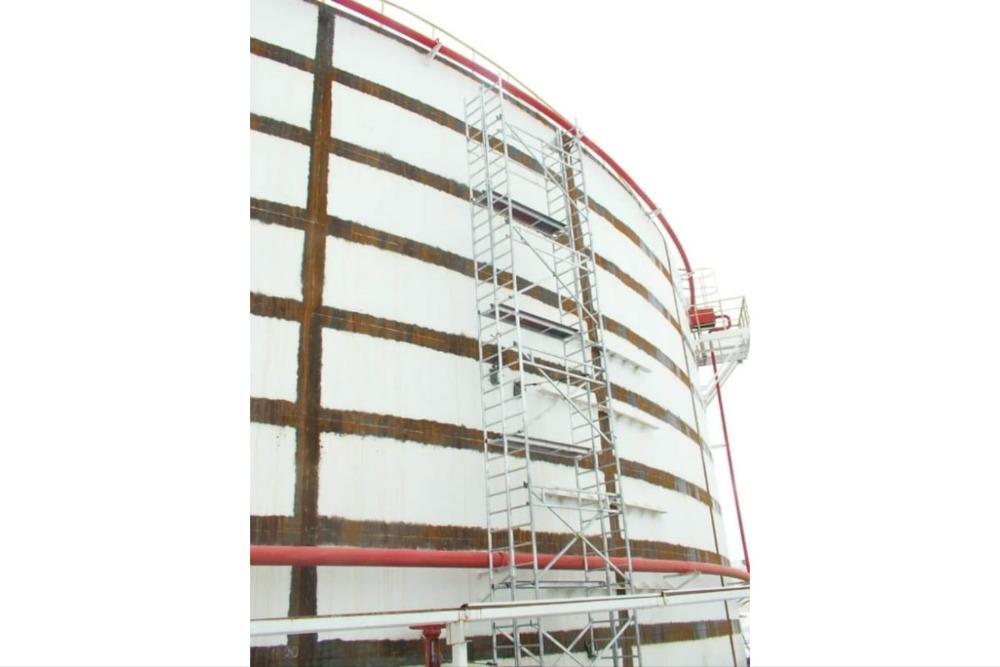 Вышка модульная алюминиевая MEGAL ВМА 900/19 используется при выполнении работ внутри резервуаров и емкостей. Габариты всех деталей не превышают 450мм, что позволяет пропустить их через технический лаз и провести сборку внутри резервуара. Вышка собирается из узких двухметровых и метровых вертикальных рам. Рамы фиксируются крепежными скобами и крепежом для стыкования рам. Безопасный подъем обеспечивается за счет использования нескользящих рифленых перекладин в рамах. Используются диагональные и горизонтальные связи (стяжки). Сборка производится без инструментов за счет наличия замкового крепления элементов. Верхний рабочий настил размером 2,0 х 0,9м с люком (составной). Промежуточные настилы размером 2,0 х 0,45м. Монтируется на усиленном основании из двойной траверсы с поворотными колесами, со стопорами. Используется надежная фиксация к стенкам резервуара за счет магнитных крепежей, которые не портят поверхность. Вышка имеет легкий вес за счет использования алюминиевых сплавов. Высокая грузоподъемность обеспечивается за счет использования труб и профилей со стенкой не менее 2,5мм. Компенсация неровной поверхности возможна за счет регулирования вышек по высоте с помощью винтовых домкратов.