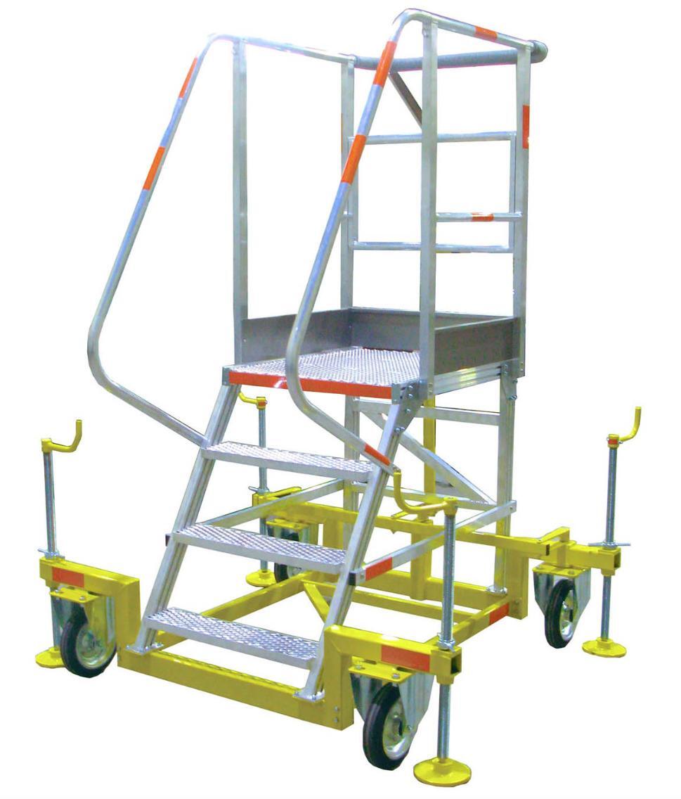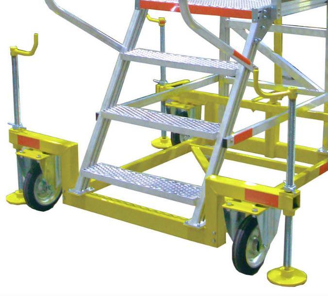 Вышка-стремянка алюминиевая MEGAL ВСА-1,0А предназначена для безопасной и удобной работы на складах, стройплощадках, в производственных цехах. За счет использования труб и профилей со стенкой не менее 2,5мм обеспечивается высокая грузоподъемность. Подъем осуществляется по широким ступеням из просечно-вытяжного листа, обеспечивающим надежное сцепление в холодное время года. Глубина ступеней 135 мм. Для безопасного подъема и спуска в конструкции предусмотрены перила по всей длине лестничного марша. Поворотные колеса обеспечивают высокую маневренность. Колесная база оснащена винтовыми опорами, обеспечивающими устойчивость изделия при работе на высоте.