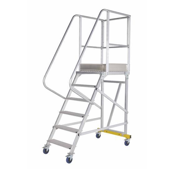 Вышка - стремянка разборная на колесах (150кг+150кг) MEGAL ВС2-1.8 предназначена для работ в торговых залах, на складах, вдоль стеллажей и других объектов, при проведении ремонтных, монтажных и иных работ на высоте. Представляет собой безопасную и легкую конструкцию из алюминиевых профилей высокой прочности. Имеет безопасные противоскользящие ступени из специального рифленого профиля. Площадка размером 800х680мм позволяет удобно расположиться рабочему с необходимым инструментом. Трехстороннее ограждение площадки со встроенной защитной планкой в районе колен, бортовое ограждение, перила по всей длине лестничного марша, ступени глубиной 160мм обеспечивают безопасный подъем, спуск и проведение работ, что подтверждает полное соответствие требованиям по ГОСТ. Все соединительные узлы и элементы полностью безопасны, обработаны и одобрены службой контроля качества. Простая и быстрая сборка лестницы без специального инструмента и поставка в виде предварительно собранных узлов сокращают время подготовки оборудования MEGAL к работе. Максимальный срок службы достигнут благодаря коррозионностойким свойствам алюминиевых сплавов. Небольшая занимаемая площадь и прочные поворотные колеса со стопорами позволяют легко маневрировать в ограниченном пространстве.
