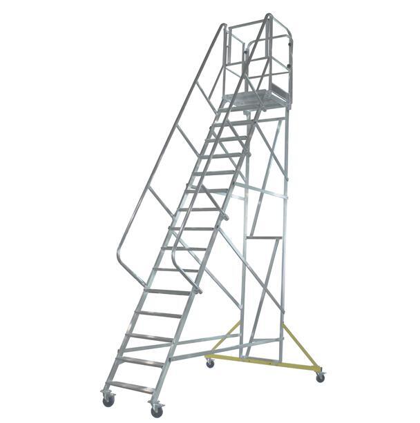 Вышка - стремянка разборная на колесах (150кг+150кг) MEGAL ВС2-4.5 предназначена для работ в торговых залах, на складах, вдоль стеллажей и других объектов, при проведении ремонтных, монтажных и иных работ на высоте. Представляет собой безопасную и легкую конструкцию из алюминиевых профилей высокой прочности. Имеет безопасные противоскользящие ступени из специального рифленого профиля. Площадка размером 800х680мм позволяет удобно расположиться рабочему с необходимым инструментом. Трехстороннее ограждение площадки со встроенной защитной планкой в районе колен, бортовое ограждение, перила по всей длине лестничного марша, ступени глубиной 160мм обеспечивают безопасный подъем, спуск и проведение работ, что подтверждает полное соответствие требованиям по ГОСТ. Все соединительные узлы и элементы полностью безопасны, обработаны и одобрены службой контроля качества. Простая и быстрая сборка лестницы без специального инструмента и поставка в виде предварительно собранных узлов сокращают время подготовки оборудования MEGAL к работе. Максимальный срок службы достигнут благодаря коррозионностойким свойствам алюминиевых сплавов. Небольшая занимаемая площадь и прочные поворотные колеса со стопорами позволяют легко маневрировать в ограниченном пространстве.