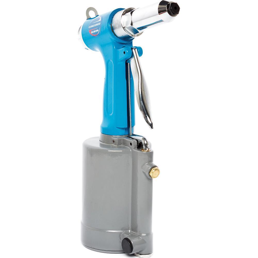 Пневмогидравлический заклёпочник предназначен для установки вытяжных заклёпок при монтаже различных конструкций. Пневматический привод отличается повышенной надёжностью и возможностью продолжительного использования без перерывов. При этом имеет длительный срок эксплуатации. Совместимый диаметр заклёпок: 2,4; 3,2; 4,8 мм.